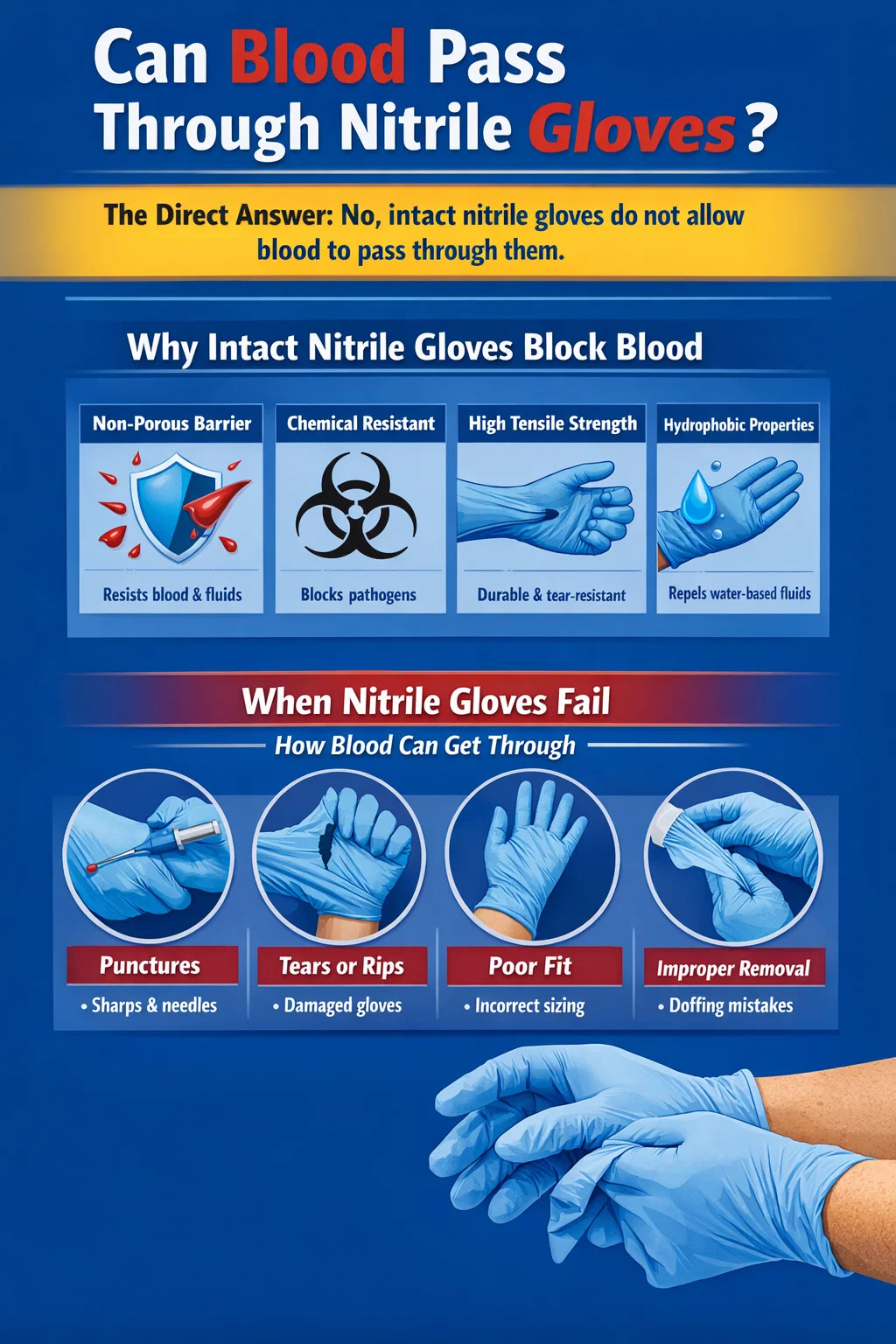 Under normal conditions, intact nitrile gloves do not allow blood to pass through them. Nitrile rubber is a dense, synthetic material that forms a continuous barrier against liquids, including blood and other bodily fluids. This is one of the primary reasons nitrile gloves have become the dominant choice in medical, laboratory, and emergency response settings worldwide.