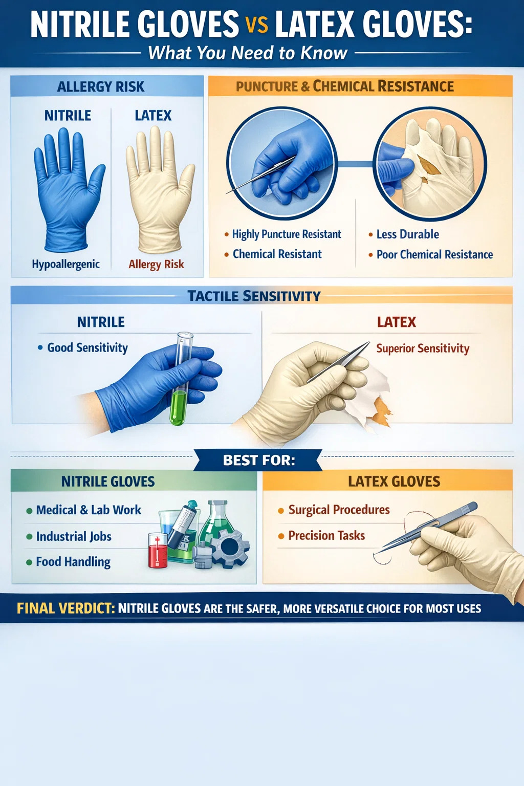 When you weigh allergy risk, puncture resistance, chemical resistance, durability, and the direction of institutional health policy globally, nitrile gloves come out ahead as the safer, more practical choice for the overwhelming majority of use cases. The elimination of latex allergy risk alone is compelling enough for most healthcare facilities, food service operations, and industrial workplaces to standardize on nitrile.